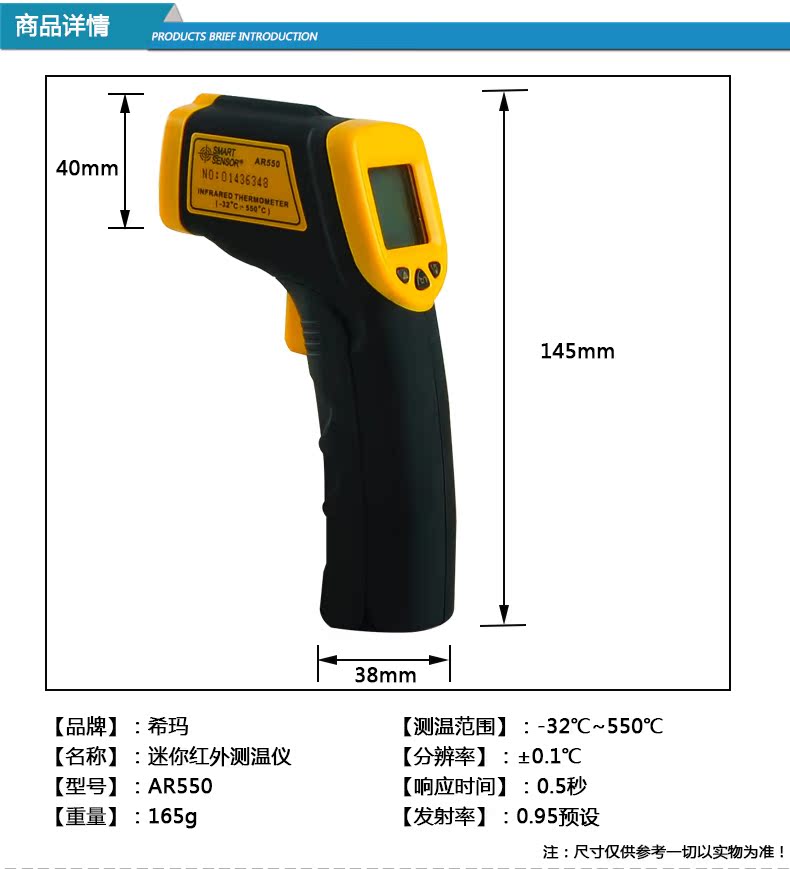 高精度紅外測(cè)溫儀AR550 【非接觸式溫度計(jì) AR-550】