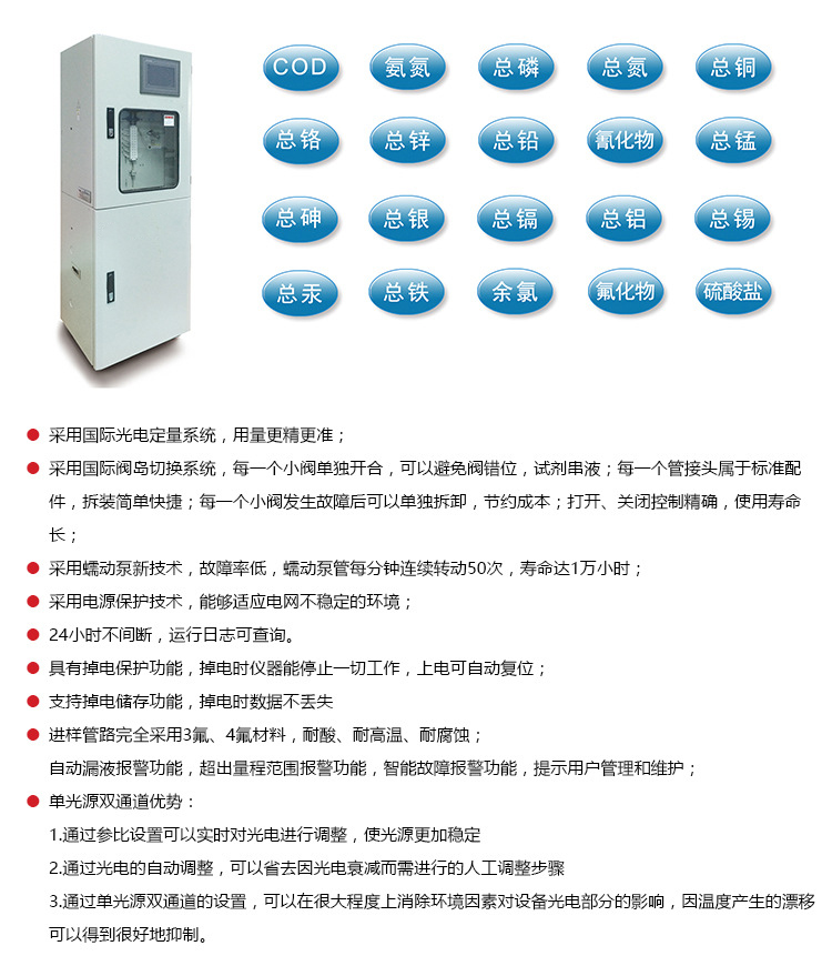 — 每次測(cè)量結(jié)束后,自動(dòng)清洗處理裝置、儀器管路、閥門等部件;