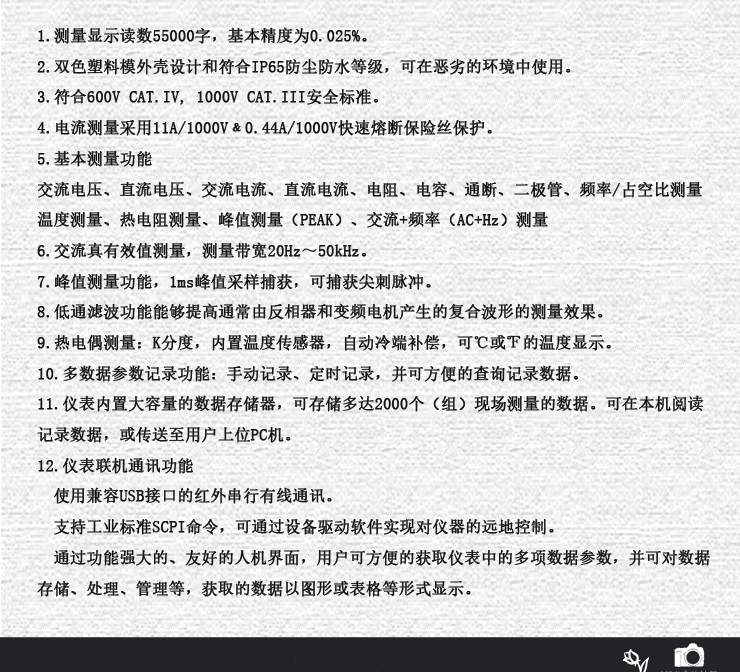 50mV | 0~55.000mV | 0.001mV | 2%+80 | 0.7%+30 | 0.7%+30 | 2%+30 | 3%+60 | 5%+100 | |