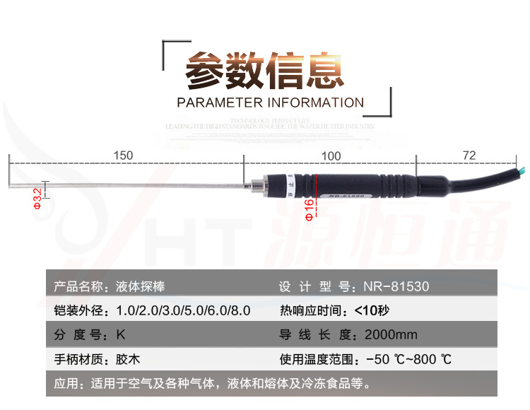 源恒通液體火焰氣體浸入式K型測(cè)溫度探頭針長(zhǎng)15CM,測(cè)溫-50~800度