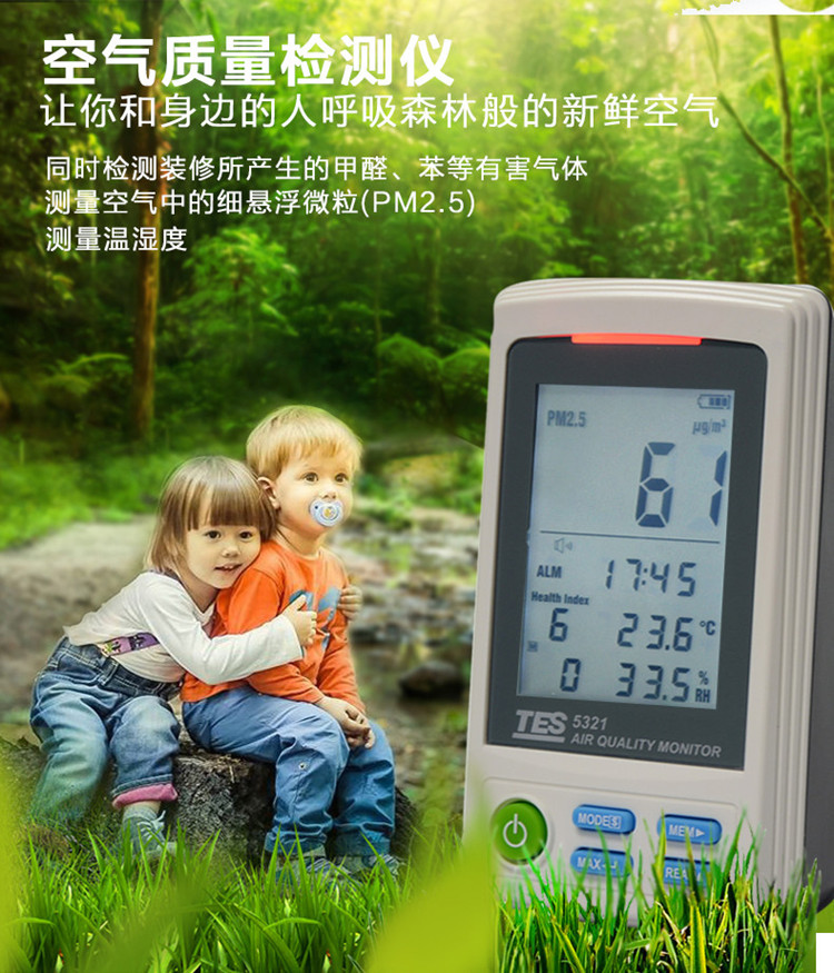 1臺灣進口家用PM2.5檢測儀室內空氣質量甲醛霧霾粉塵TES-5321