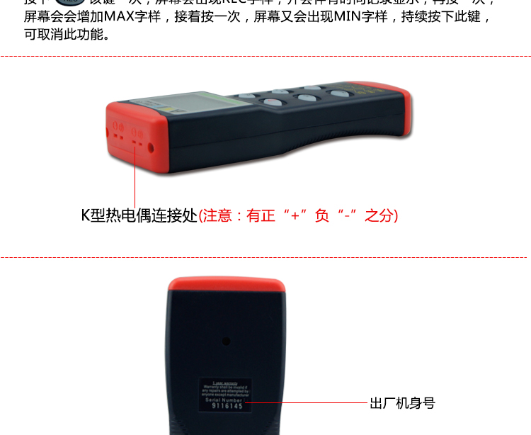 溫度范圍/準(zhǔn)確度:K -200~1370℃ ±(0.1%rdg +0.7℃)