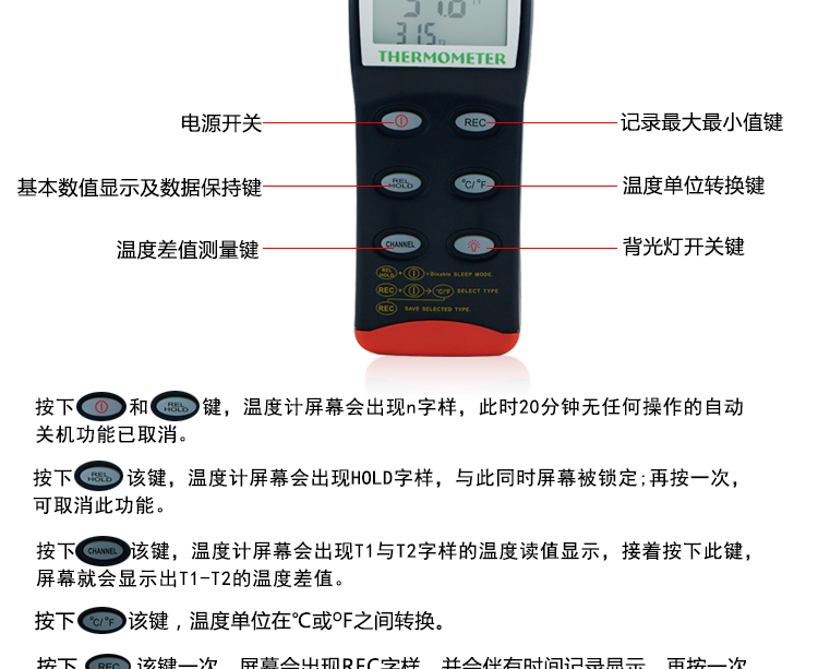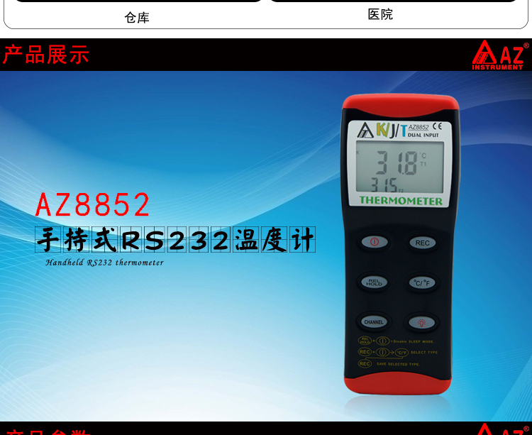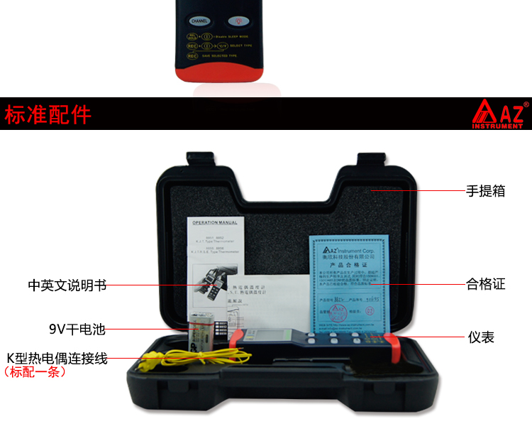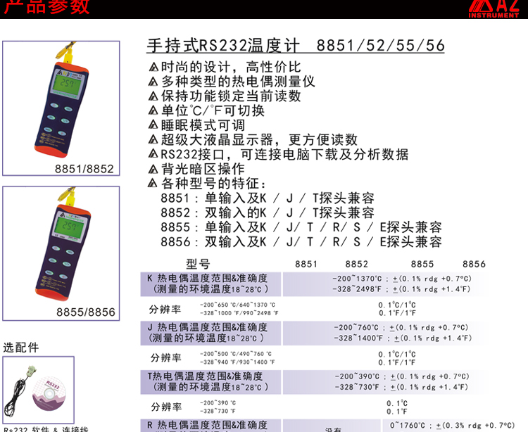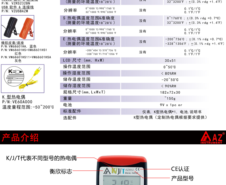 技術(shù)參數(shù)衡欣 AZ8852雙通道熱電偶溫度計(jì)K/J/T型探頭數(shù)顯測溫器電子測溫儀