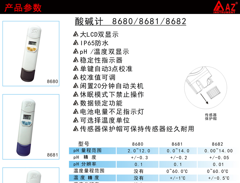 臺(tái)灣衡欣酸度計(jì)AZ8680筆型PH計(jì)AZ-8680