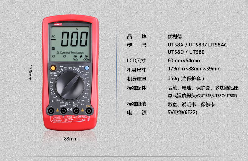 優(yōu)利德UT58A/UT58B/UT58C/UT58D/UT58E 通用型數(shù)字萬(wàn)用表萬(wàn)能表數(shù)顯手持多用表電表優(yōu)利德UT58A/UT58B/UT58C/UT58D/UT58E 通用型數(shù)字萬(wàn)用表萬(wàn)能表數(shù)顯手持多用表電表