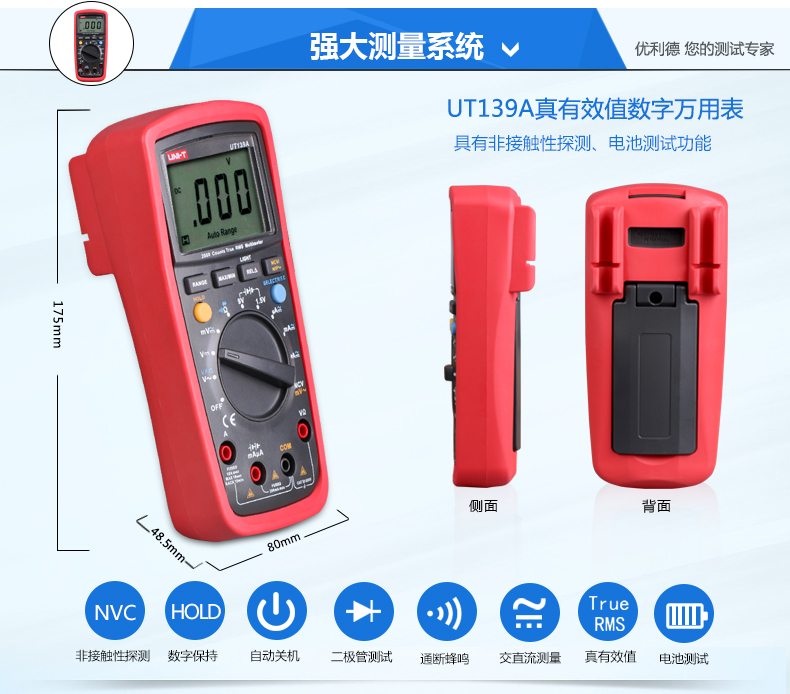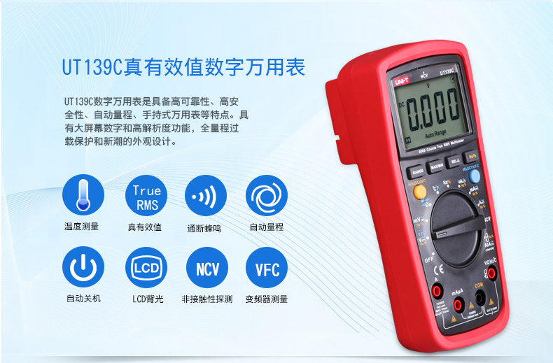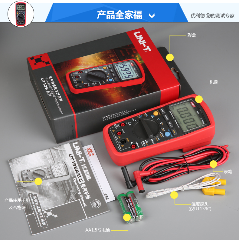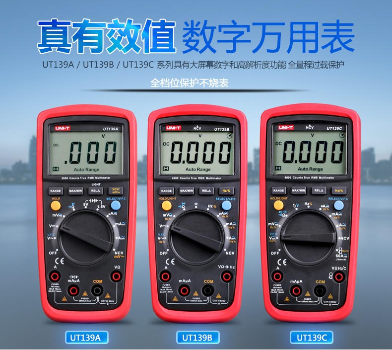 優(yōu)利德UT139A/UT139B/UT139C真有效值數(shù)字萬用表防燒反應(yīng)快萬能表
