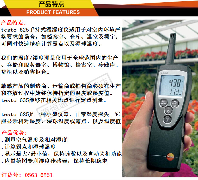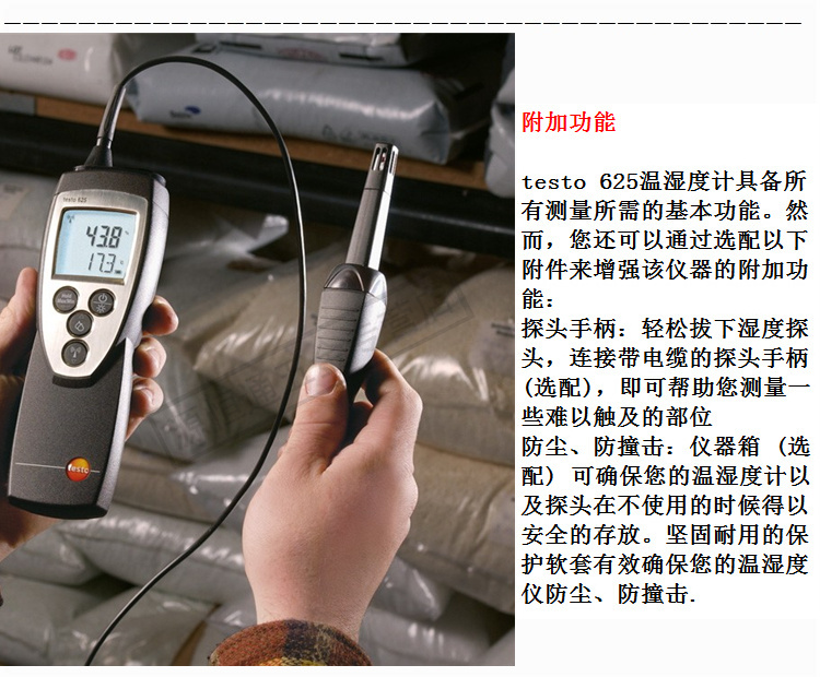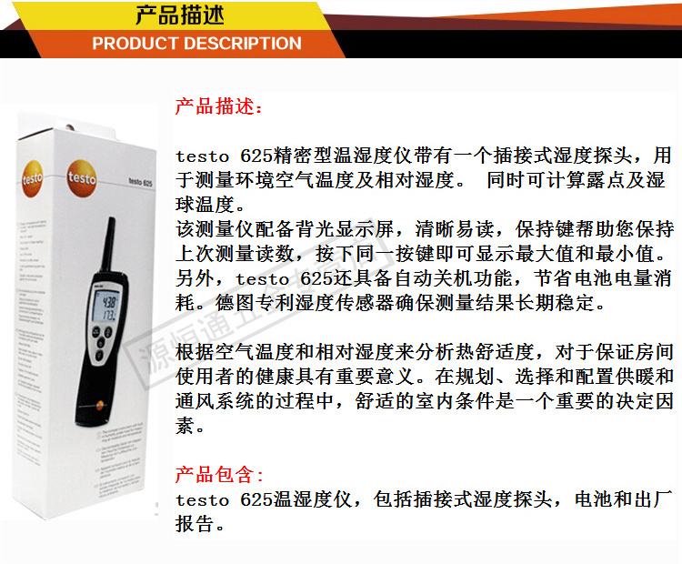 德國(guó)德圖testo625高精度溫濕度儀 溫濕度計(jì) 一體式 濕球溫度表 精密型溫濕度儀,內(nèi)置濕度探頭,測(cè)量空氣濕度和溫度。寬大的顯示屏2行顯示濕度、濕球溫度或露點(diǎn),以及溫度,穩(wěn)定性可保持長(zhǎng)達(dá)2年以上。探頭類型有 NTC/K型/電容濕度傳感器,量程分別是-10~+60 ℃/-200~+1370 ℃/0~+100 %RH,分辨率0.1 ℃/0.1 ℃/ 0.1 %RH. 德國(guó)德圖testo625高精度溫濕度儀 溫濕度計(jì) 一體式 濕球溫度表 德國(guó)德圖testo625高精度溫濕度儀 溫濕度計(jì) 一體式 濕球溫度表德國(guó)德圖testo625高精度溫濕度儀 溫濕度計(jì) 一體式 濕球溫度表德國(guó)德圖testo625高精度溫濕度儀 溫濕度計(jì) 一體式 濕球溫度表德國(guó)德圖testo625高精度溫濕度儀 溫濕度計(jì) 一體式 濕球溫度表德國(guó)德圖testo625高精度溫濕度儀 溫濕度計(jì) 一體式 濕球溫度表德國(guó)德圖testo625高精度溫濕度儀 溫濕度計(jì) 一體式 濕球溫度表