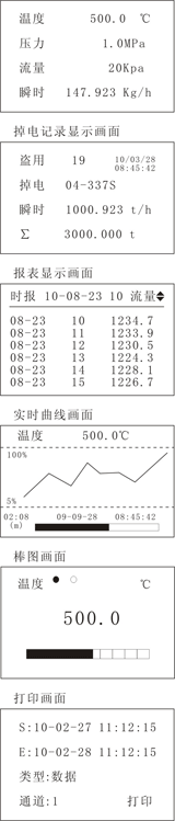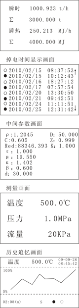 NHR-6600R系列液晶流量(熱能)積算記錄儀(配套型),設(shè)計上采用高性能ARM微處理器和24位高速A/D,3.5英寸128*64高分辨率點陣式白底黑字液晶顯示器,對現(xiàn)場溫度、壓力、流量等各種信號進行采集、顯示、控制、遠傳、通訊、打印等處理,構(gòu)成數(shù)字采集系統(tǒng)及控制系統(tǒng),適合于對氣體、液體和蒸汽等介質(zhì)的流量進行過程監(jiān)測。 ★萬能信號輸入,可輸入直流電流、直流電壓、毫伏、熱電阻、熱電偶、頻率等信號;0.2級測量精度。 ★帶各種流量計算模型??膳錅u街、孔板、噴嘴、電磁以及V錐等多種流量計使用。 ★儀表具有貿(mào)易結(jié)算功能,可設(shè)置小流量補足、停電補足、以及流量付費功能,解決供需雙方貿(mào)易結(jié)算糾紛。 ★具有信號斷線補償功能,解決現(xiàn)場溫度傳感器、壓力傳感器發(fā)生故障造成的流量缺失。 ★具有累積流量年、月、日報表功能;停電\上電記錄功能、總掉電時間和總掉電次數(shù)記錄功能,防止用戶停電竊汽。 ★具有斷電保護功能,F(xiàn)LASH存儲器保存設(shè)置參數(shù)和歷史數(shù)據(jù),斷電后數(shù)據(jù)長久保存。采用硬件時鐘,掉電后也能準(zhǔn)確運行。 ★支持RS485、RS232串行接口,采用標(biāo)準(zhǔn)MODBUS RTU通訊協(xié)議。 ★支持RS232C打印功能,具有手動打印、定時打印功能。 ★帶DC24V饋電輸出,為現(xiàn)場變送器配電。
