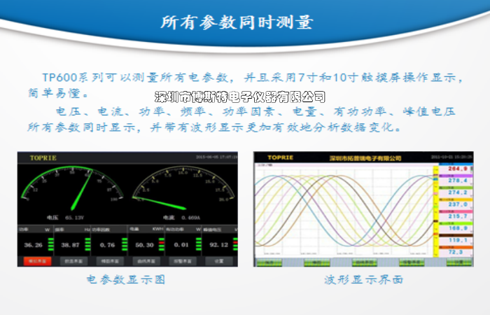拓普瑞TP610多通道功率記錄儀 在生產(chǎn)線或需長(zhǎng)時(shí)間測(cè)量實(shí)驗(yàn)的情況下,傳統(tǒng)的功率測(cè)量設(shè)備需要人員監(jiān)視并手動(dòng)記錄一些測(cè)量出來(lái)的數(shù)值。TP670數(shù)字功率計(jì)功率記錄儀具有自動(dòng)記錄數(shù)值的功能,并且隨時(shí)可在儀器內(nèi)部查看歷史數(shù)據(jù),也能用U盤(pán)導(dǎo)出數(shù)據(jù)放入電腦用PC軟件進(jìn)行進(jìn)一步分析。 拓普瑞TP610多通道功率記錄儀