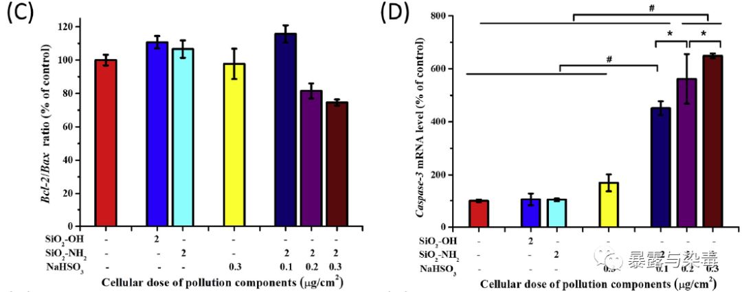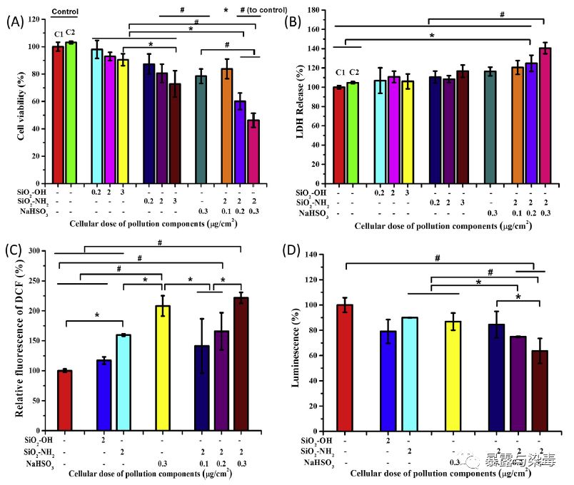 顆粒物(PM)暴露對人體健康有許多不利影響。空氣環(huán)境是一由各種復(fù)雜混合物構(gòu)成的,然而,要厘清其中單個污染物的毒性貢獻(xiàn)是非常有挑戰(zhàn)性的。本研究的目的是使用二氧化硅納米顆粒(SiO2 NPs)和亞硫酸氫鹽組成的氣溶膠作為模擬粒子相關(guān)的高硫污染物。然后,使用氣-液界面(ALI)的暴露室在細(xì)胞水平上評估二氧化硫?qū)】档挠绊?。BEAS-2B細(xì)胞在氣-液界面(ALI)分別暴露于納米二氧化硅、亞硫酸氫鹽氣溶膠以及涂有亞硫酸氫鹽的二氧化硅(SiO2-NH2@HSO3)氣溶膠中3 小時。根據(jù)暴露劑量比較其對細(xì)胞的毒性。二氧化硅納米顆粒(SiO2NPs)單獨暴露于空氣中不產(chǎn)生明顯的細(xì)胞毒性,但涂有亞硫酸氫鹽的二氧化硅(SiO2-NH2@HSO3)氣溶膠暴露顯著降低了細(xì)胞活性,并以劑量依賴性方式增強(qiáng)了細(xì)胞活性氧的產(chǎn)生。因此,過度的氧化應(yīng)激導(dǎo)致線粒體損傷和細(xì)胞凋亡。氣-液界面暴露方法可能反映人體呼吸系統(tǒng)的實際生理暴露狀況。硫酸鹽作為空氣污染二氧化硫的衍生物,加劇了可吸入PMS的毒性作用。這一結(jié)果可能是由于納米顆粒具有大表面積的特性,在氣溶膠暴露期間能夠攜帶更多的亞硫酸鹽并到達(dá)靶細(xì)胞。硫酸鹽水平為目前的PM2.5空氣污染指數(shù)提供了一個有意義的補充,以實現(xiàn)更好的人類健康防護(hù)。