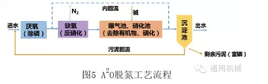 70年代,美國專家在A/O工藝的基礎(chǔ)上,再加上除磷就成了A2O工藝(如圖5)。我國1986年建廠的廣州大坦沙污水處理廠,采用的就是A2O工藝,當(dāng)時的設(shè)計(jì)處理水量為15萬噸,是當(dāng)時世界上*大的采用A2O工藝的污水處理廠。